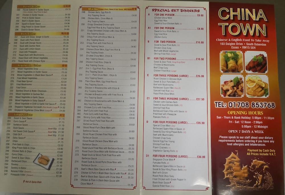 Located at 103 Daiglen Dr, South Ockendon, RM15 5EH, China Town has been a beloved part of this community for decades. Just a short drive from Thurrock services, the eatery is easily accessible for both locals and visitors. Free street parking nearby makes pickup hassle-free, and a wheelchair-accessible entrance ensures everyone can enjoy a meal here.